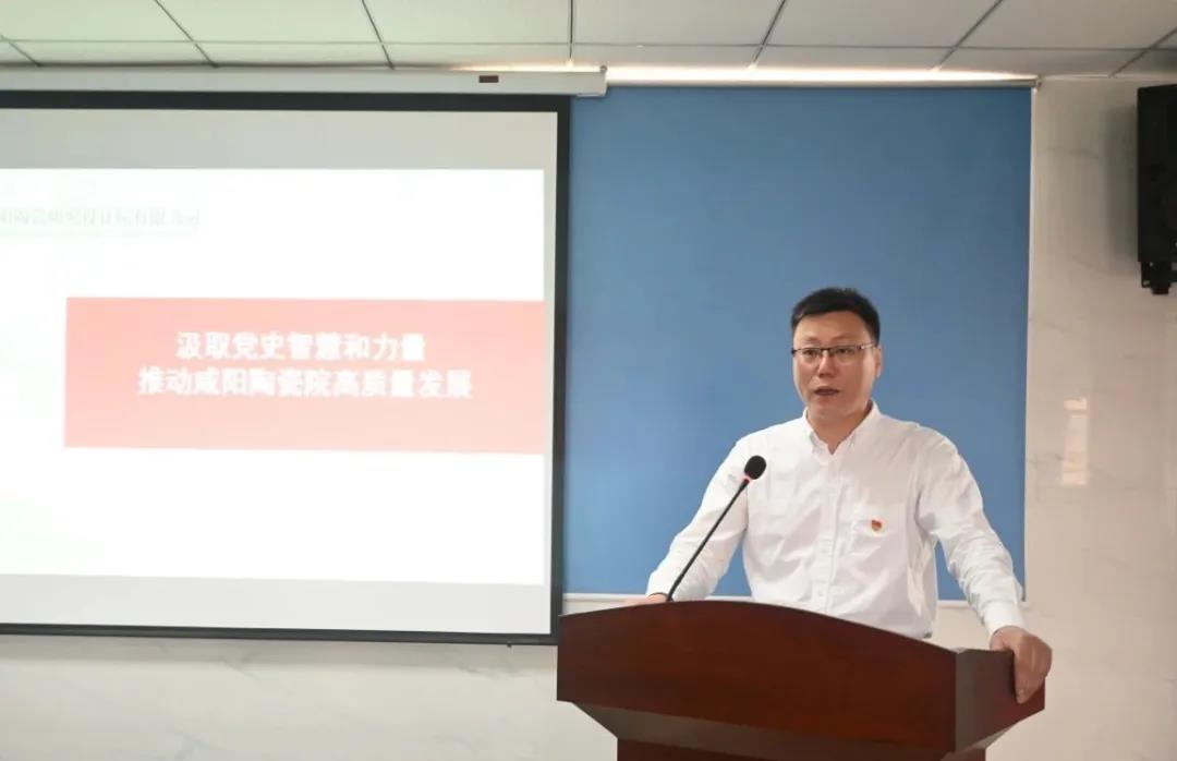 會議在莊嚴的國歌聲中拉開了帷幕。會上,黨委書記王華作了題為《汲取黨史智慧和力量 推動咸陽陶瓷院高質量發展》的報告。王華首先代表咸陽陶瓷院黨委向辛勤奮戰在工作崗位上的廣大黨員致以節日的問候!向為陶瓷事業做出卓越貢獻的老黨員致以崇高的敬意!講話中,王華從七個方面全面回顧了2021年上半年黨委工作,并對下半年的工作做出部署,他強調:要深入挖掘黨史學習的深度、要不斷開拓黨史學習的廣度、要精準把握黨史學習的紀律尺度、要力求拓展黨史學習的寬度,統籌全面發展的良好局面,圍繞實現年度經營目標,全力做好黨建引領、業務開拓、科技創新、改革轉型、安全生產等重點工作,確保“十四五”開好局、起好步,以優異成績慶祝建黨100周年。