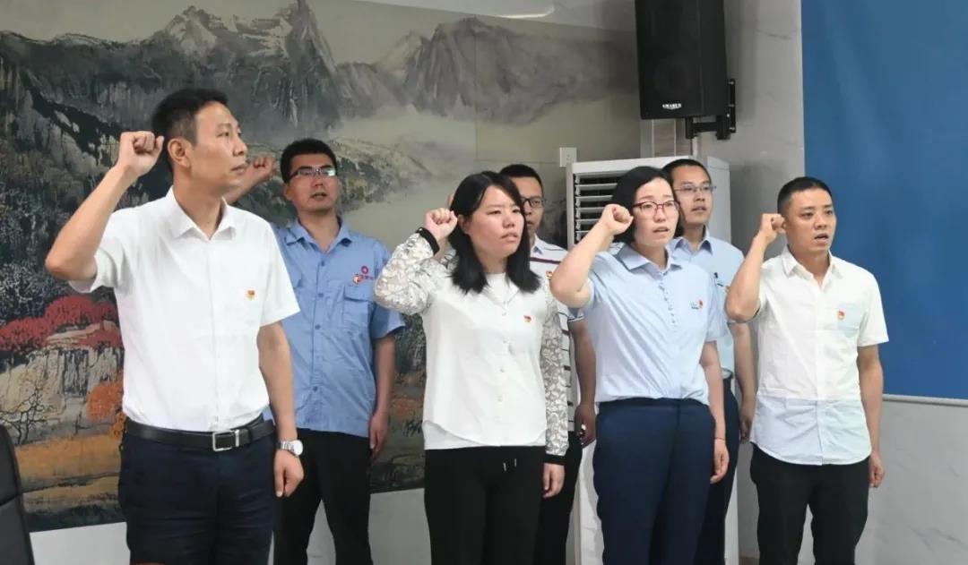 常豪帶領預備黨員進行入黨宣誓,全體高舉右拳,面向鮮紅的黨旗莊嚴宣誓。“我志愿加入中國共產黨,擁護黨的綱領,遵守黨的章程,履行黨員義務... ...”以錚錚誓言表達了自己的決心和擔當。