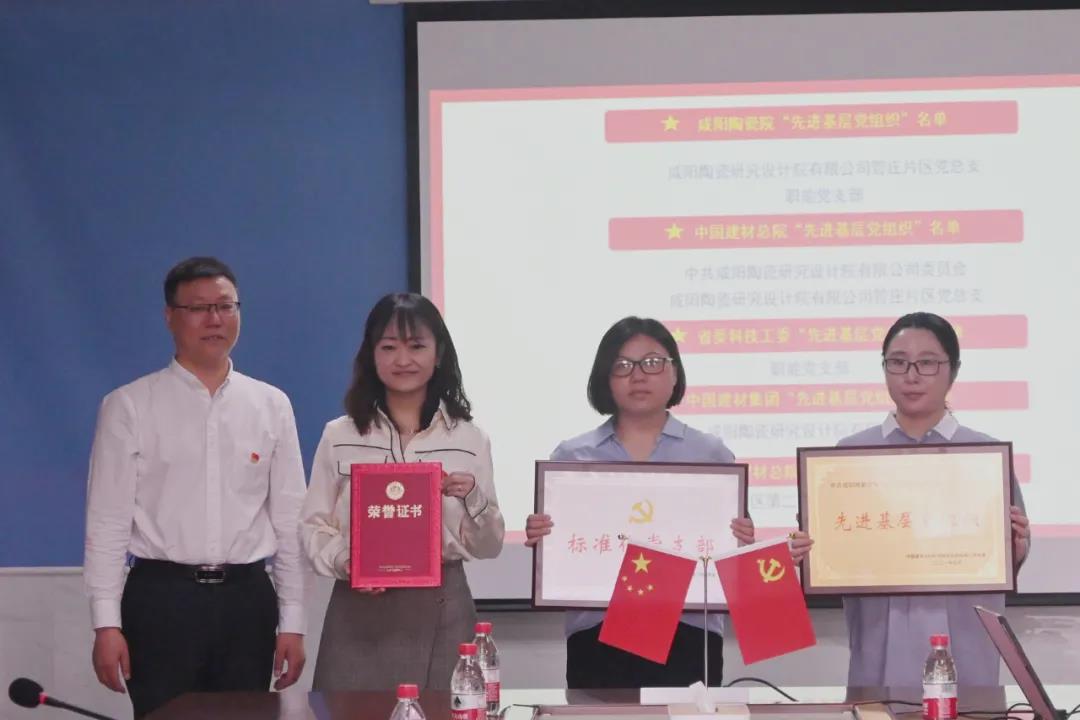 院領導班子為1名中國建材集團“優秀共產黨員”、4名中國建材總院“優秀共產黨員”、1名省委科技工委“優秀共產黨員”、10名咸陽陶瓷院“優秀共產黨員”;2名中國建材總院“優秀黨務工作者”、1名省委科技工委“優秀黨務工作者”、3名咸陽陶瓷院“優秀黨務工作者”;1個中國建材集團“先進基層黨組織”、2個中國建材總院“先進基層黨組織”、2個中國建材總院“標準化黨支部”、1個省委科技工委“先進基層黨組織”、2個咸陽陶瓷院“先進基層黨組織”進行頒獎。隨后,2021年度 中國建材總院“優秀共產黨員”代表任瑞康、石萍、張蕊作交流發言。